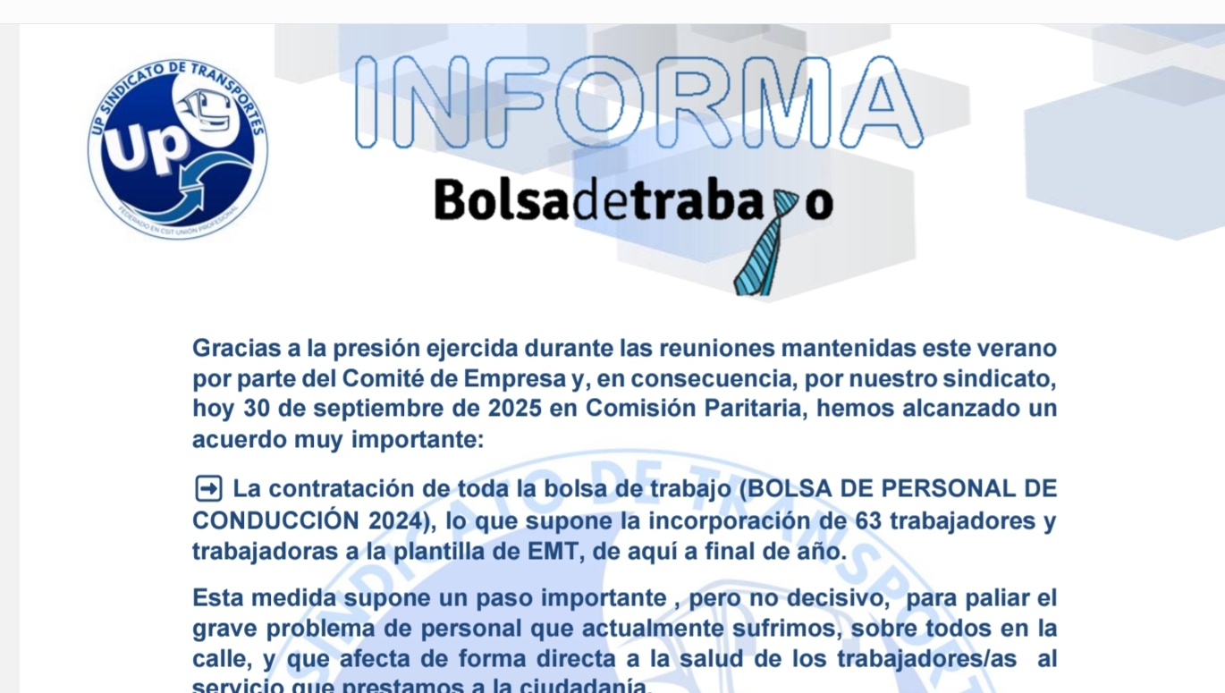 Nuevo acuerdo para la contratación de 63 personas de la Bolsa de Trabajo de Conductores 2024. Descarga el PDF UP ...