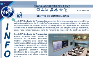 En este comunicado repasamos los siguiebtes temas de actualidad: Centro de Control (SAE) Jubilados parciales en EMT 2026 Comisión de ...