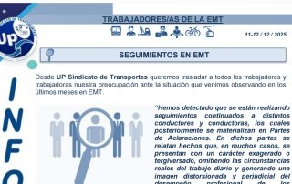 En este comunicado repasamos los siguientes temas de actualidad: Seguimientos en EMT. Trabajo en calle. Riesgos psicosociales. Descarga el PDF ...