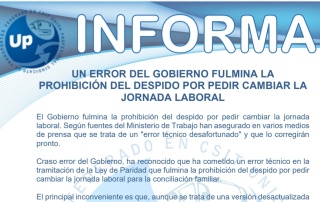 Un error en la redacción de la ley posibilita un despido al trabajador, será subsanado rapdimanete, y esperamos que no ...