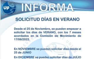 Os recordamos la normativa que establece el periodo para pedir los dias en verano. Descarga el PDF UP INFORMA Solicitud ...