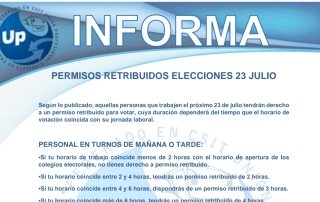 Descarga el PDF UP INFORMA Permisos Retribuidos elecciones 23 julio 2023 UP SINDICATO DE TRANSPORTES, SIEMPRE CONTIGO.