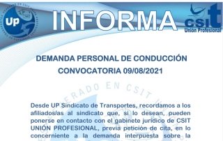 Descarga el PDF UP INFORMA Demanda Personal Conducción 09-08-2021 UP SINDICATO DE TRANSPORTES, SIEMPRE CONTIGO.