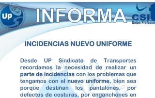 Descarga el PDF UP INFORMA Incidencias nuevo uniforme UP SINDICATO DE TRANSPORTES, SIEMPRE CONTIGO.