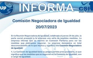 Os informamos de la reunión mantenida. Descarga el PDF UP INFORMA Comisión Igualdad 20-07-2023 UP SINDICATO DE TRANSPORTES, SIEMPRE CONTIGO.