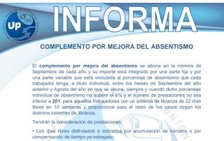 UP INFORMA: Complemento por mejora del absentismo 2023