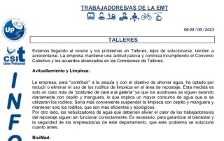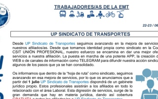 En este comunicado repasamos la actualidad de los siguientes temas: UP Sindicato de Transportes Talleres Igualdad Conductores/as de nuevo ingreso ...