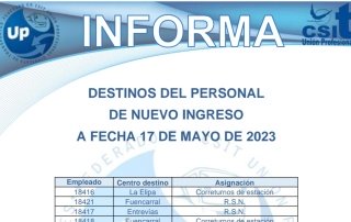 Descarga el PDF DESTINOS DEL PERSONAL 17-05-2023 UP SINDICATO DE TRANSPORTES, SIEMPRE CONTIGO
