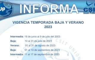 UP INFORMA: Vigencia temporada Baja y verano 2023