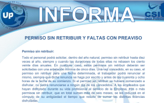 Descarga el PDF UP INFORMA Permiso sin Retribuir y Faltas con Preaviso UP Sindicato de Transportes, SIEMPRE CONTIGO.