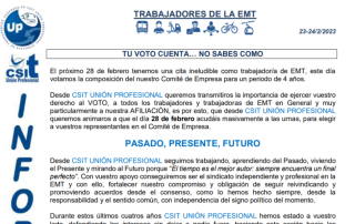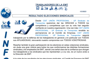 Os informamos de los resultados de las elecciones sindicales. Descarga el PDF COMUNICADO RESULTADO ELECTORAL 28-02-23 UP Sindicato de Transportes, ...