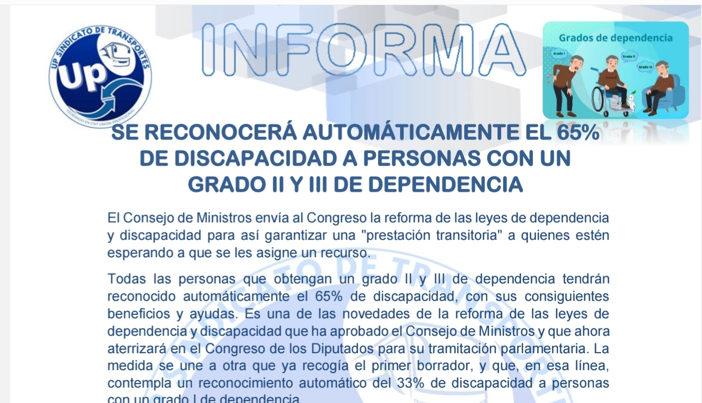Información sobre los grados de dependecia. Descarga el PDF UP INFORMA Grado de Dependencia UP SINDICATO DE TRANSPORTES SIEMPRE CONTIGO