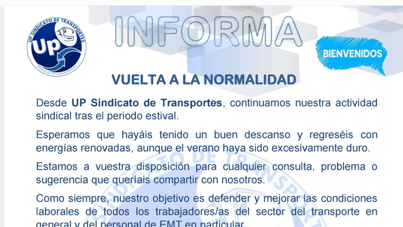 Volvemos a la normalidad Descarga el PDF UP INFORMA Vuelta a la normalidad UP SINDICATO DE TRANSPORTES SIEMPRE CONTIGO.