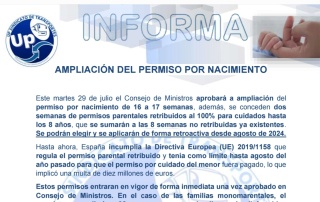 Se amplía en una semana la prestación por nacimiento pasando de 16 a 17 semanas por hijos nacidos a partir ...
