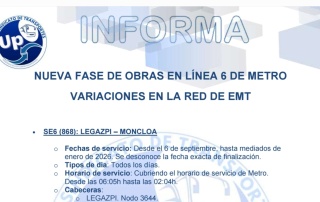 Os informamos sobre la nueva fase de la línea 6 de metro y los Servios Especiales de autobús que lo ...