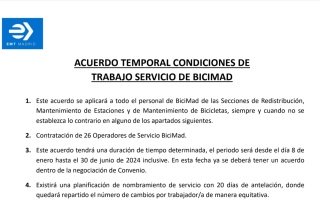 Os informamos del acuerdo alcanzado para Bicimad Descarga el PDF Acuerdo Temporal Bicimad Enero-Junio 2024 UP SINDICATO DE TRANSPORTES, SIEMPRE ...