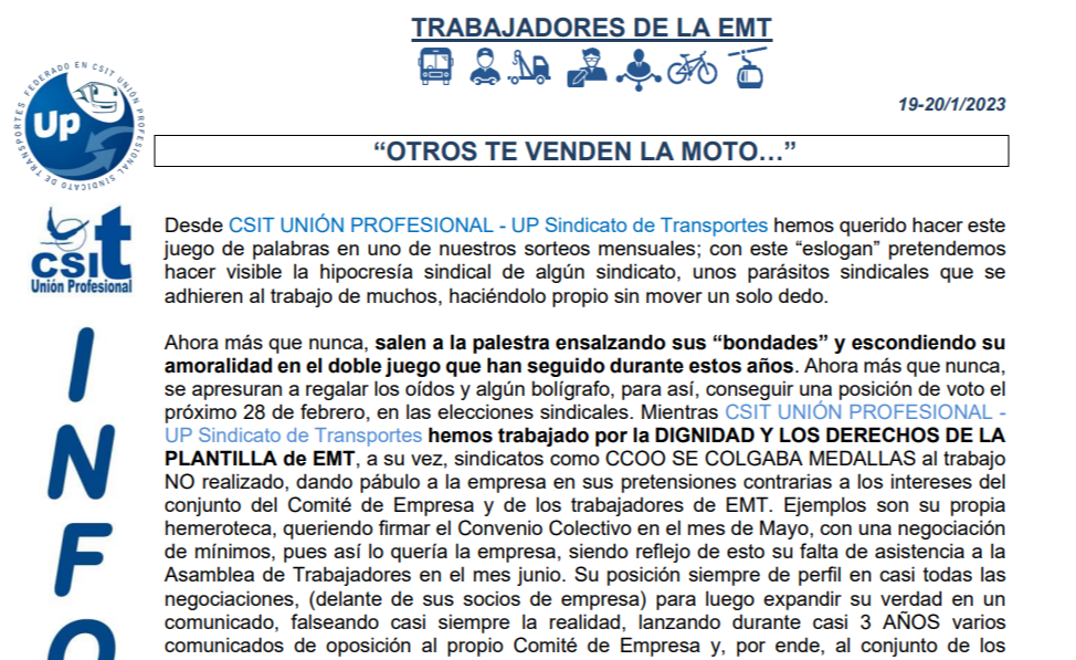 UP Sindicato de Transportes, SIEMPRE CONTIGO.