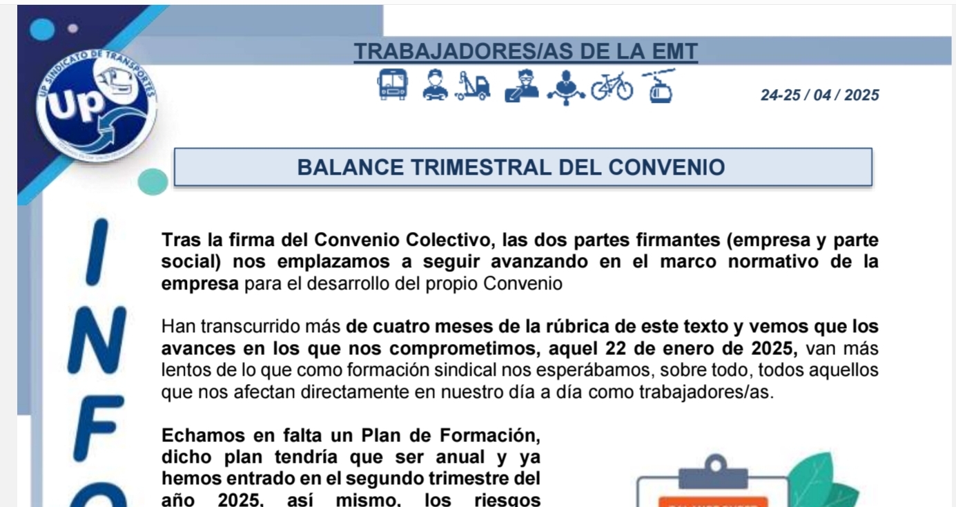 - Balance trimestral del convenio.