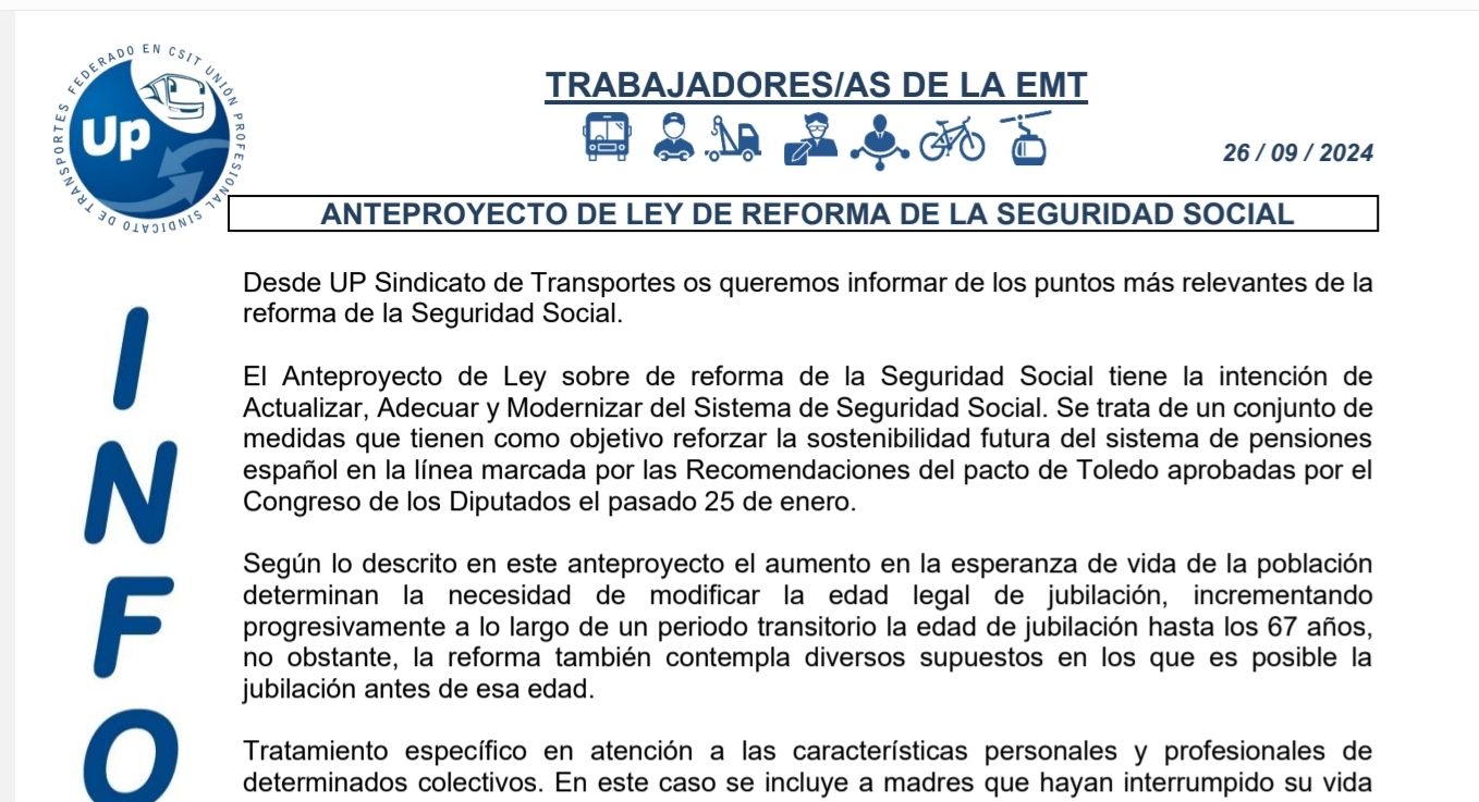 - Anteproyecto de la Ley de Reforma de la Seguridad Social.