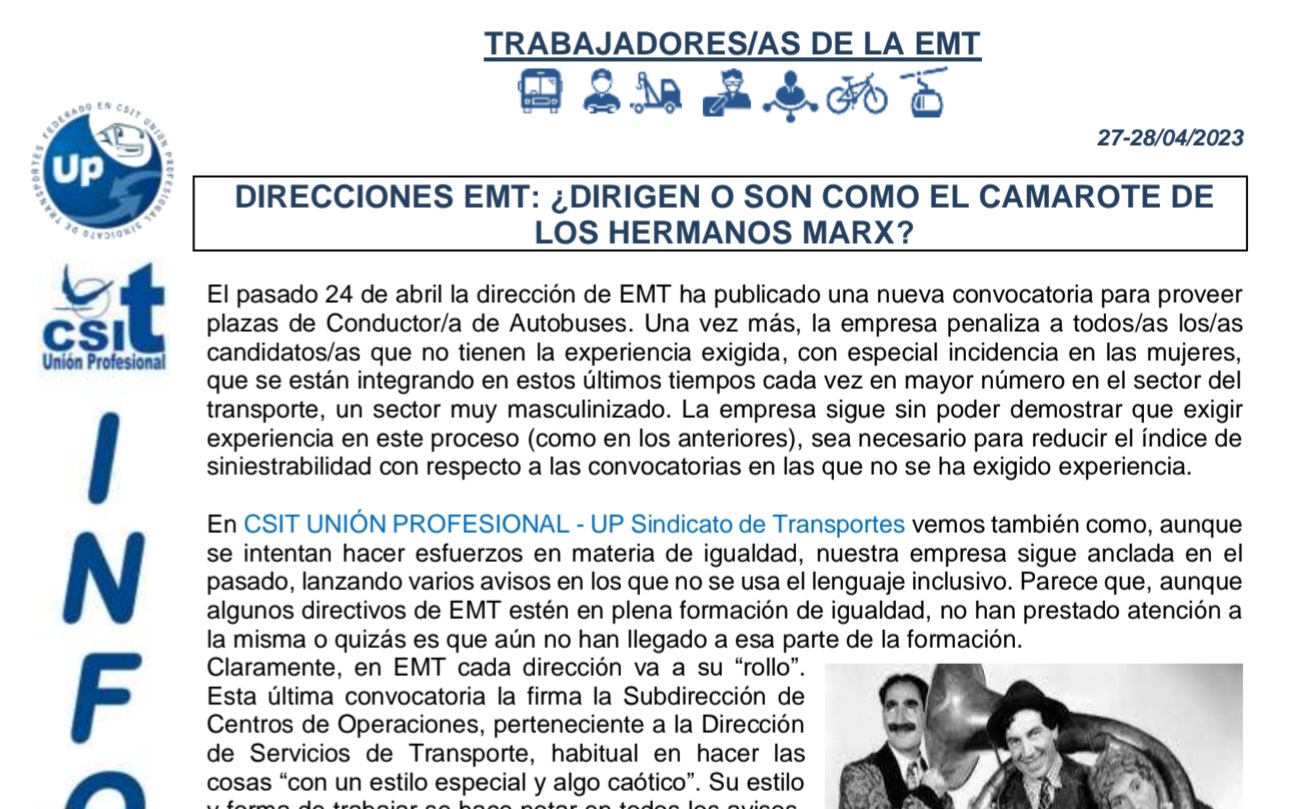 - Direcciones EMT: ¿Dirigen o son como el camarote de los hermanos Marz?