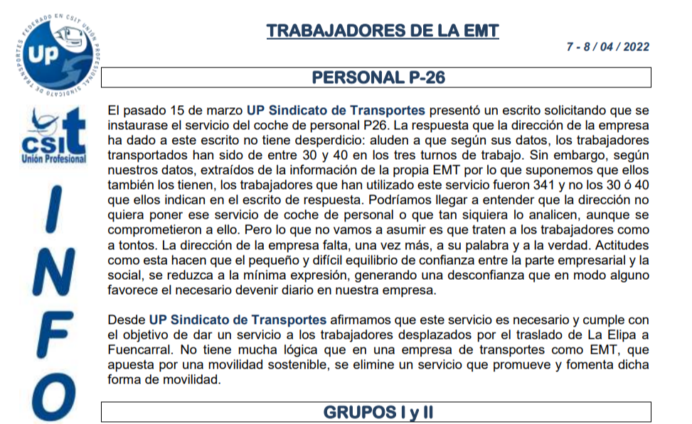 UP Sindicato de Transportes, más cerca de vosotros.