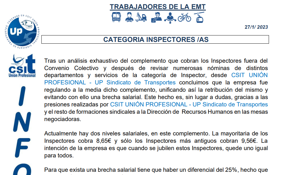 COMUNICADO CATEGORÍA DE INSPECTORES 27 de enero de 2023