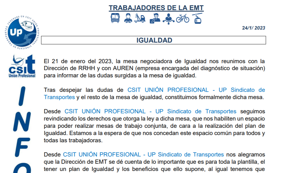En este comunicado repasamos la actualidad sobre la «Igualdad en la EMT de Madrid».