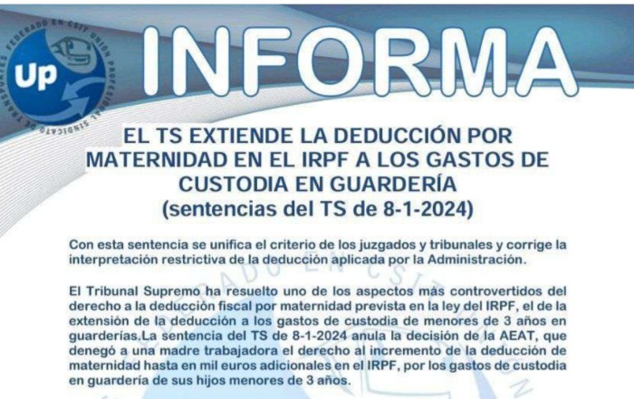 UP INFORMA TS Deducción por maternidad en el IRPF a los gastos de de custodia en guarderia