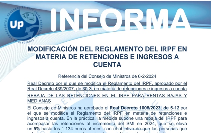 Para conocimientos de nuestros afiliados/as Descarga el PDF UP INFORMA Modif Rto IRPF Retenc e ...