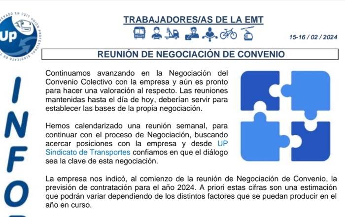 En este comunicado repasamos los siguientes temas de actualidad: Reunión negociación Talleres Incremento del 0,5% ...