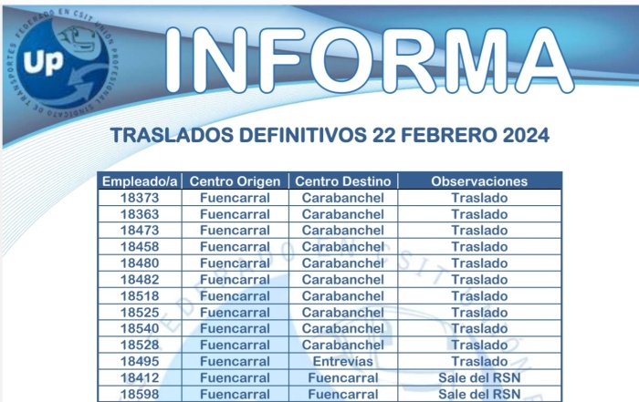 La lista definitiva de los traslados a 22 de febrero de 2024 Descarga el PDF ...