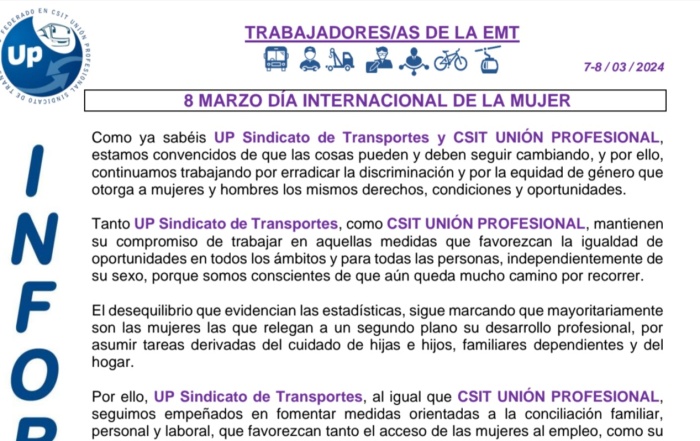 En este comunicado repasamos los siguientes temas de actualidad: 8 de marzo Día Internacional de ...