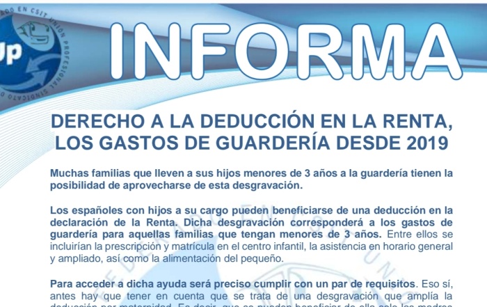 Os informamos de la deducción por guarderías en la renta 2023-2024. Descarga el PDF UP ...