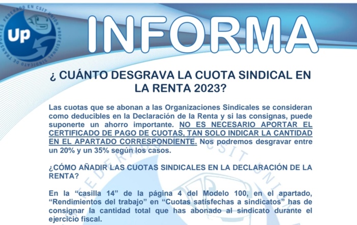 Os informamos de la desgravación en la Renta de las cuotas del sindicato. Descarga el ...
