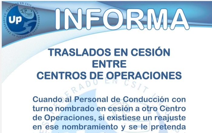 Os informamos sobre los traslados entre Centros de Operaciones. Descarga el PDF UP INFORMA Traslados ...