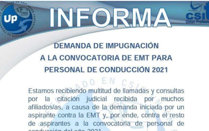 Demanda de impugnación a la convocatoria de EMT para personal de conducción 2021