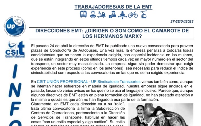 En este comunicado repasamos la actualidad de los siguientes temas: Direcciones EMT: ¿Dirigen o son ...