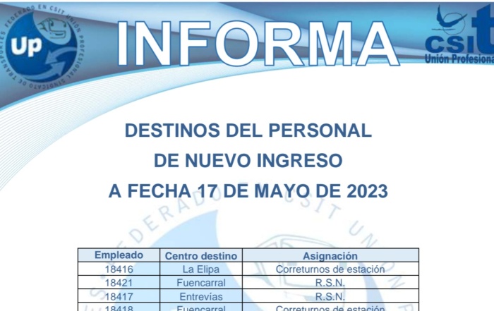 Destinos del personal 17-05-2023