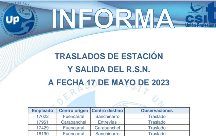 Descarga el PDF TRASLADOS ESTACIÓN Y SALIDA RSN 17-05-2023 UP SINDICATO DE TRANSPORTES, SIEMPRE CONTIGO