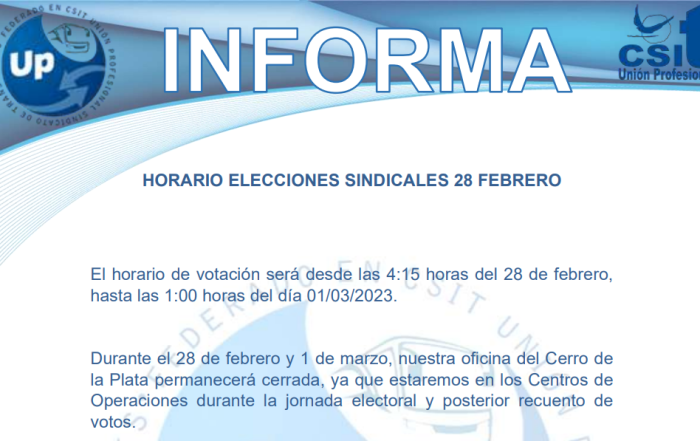 UP INFORMA Horario elecciones sindicales 28 de febrero de 2023
