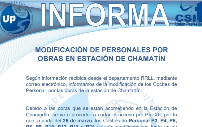 UP Informa Modificación de Personales por obras en estación de Chamartín