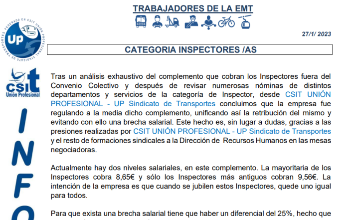 Comunicado: categoría de inspectores 27 de enero de 2023