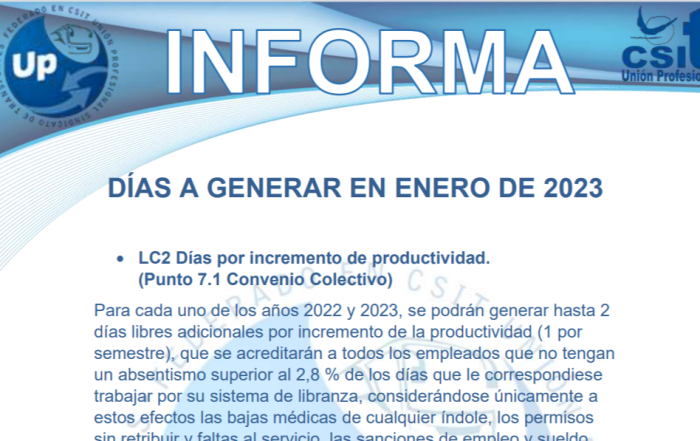 Descarga el PDF UP INFORMA Días a Generar en Enero 2023 UP Sindicato de Transportes, ...