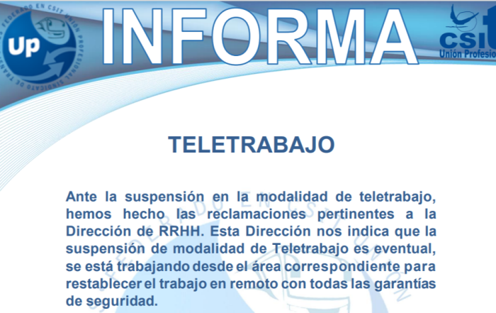 Informamos de la suspensión eventual del teletrabajo... Descarga el PDF UP INFORMA Teletrabajo UP Sindicato ...