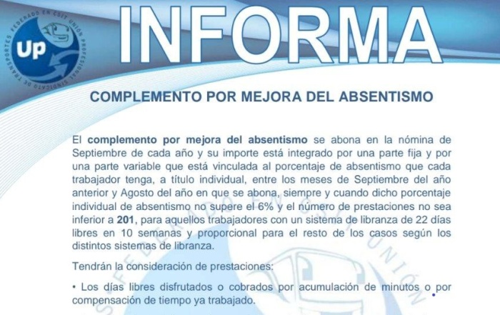 Descarga el PDF CONOCE TUS DERECHOS Complemento por Mejora del Absentismo UP Sindicato de Transportes, ...