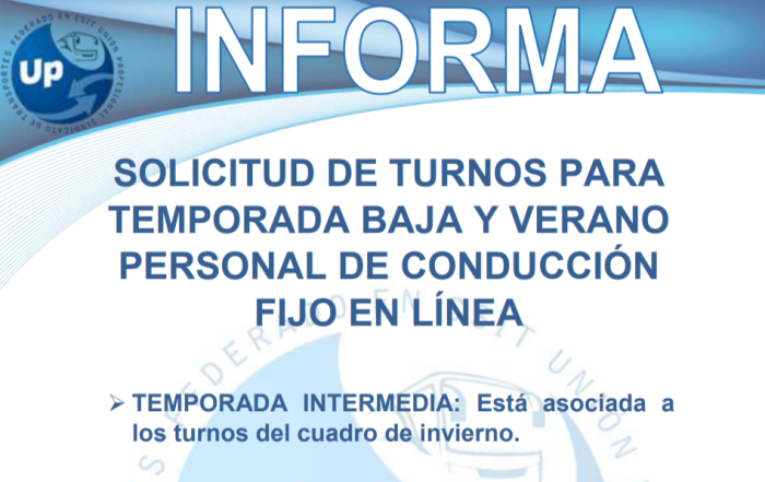 UP Informa Solicitud de turnos para temporada baja y verano personal de conducción fijo de línea