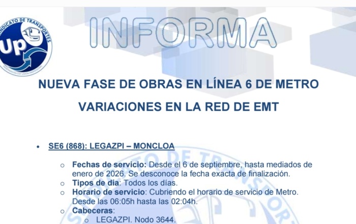 Os informamos sobre la nueva fase de la línea 6 de metro y los Servios ...