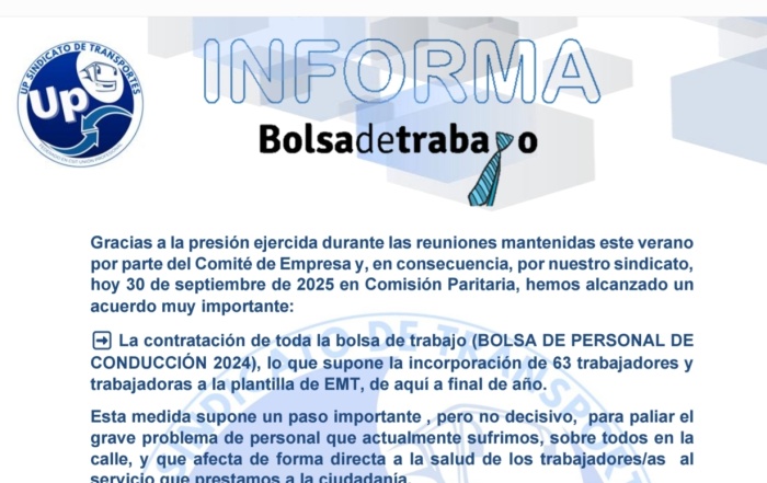 Nuevo acuerdo para la contratación de 63 personas de la Bolsa de Trabajo de Conductores ...