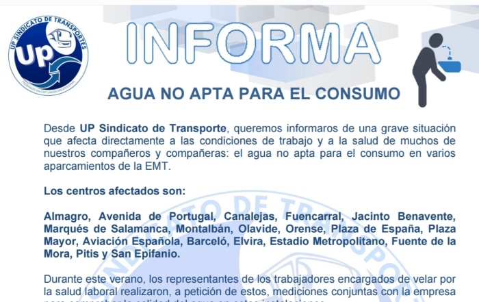 Os informamos de los problemas del agua potable en los aparcamientos. Descarga el PDF UP ...