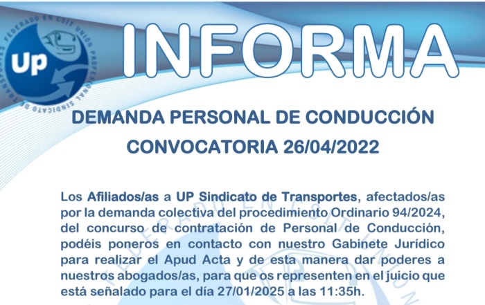 UP INFORMA Demanda personal de conducción convocatoria 26-04-2022